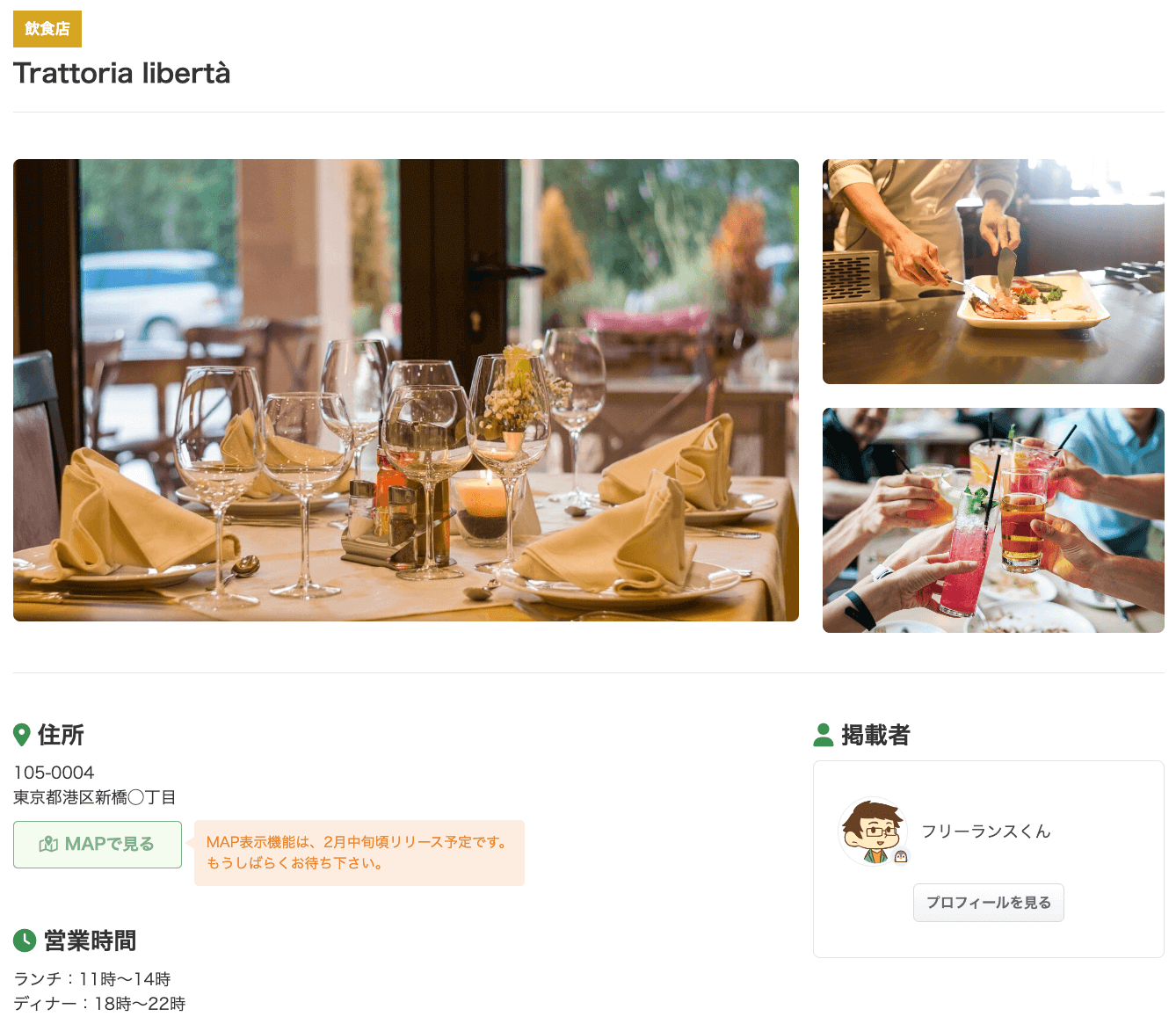 店舗や施設の掲載・検索・閲覧は、すべて無料です。