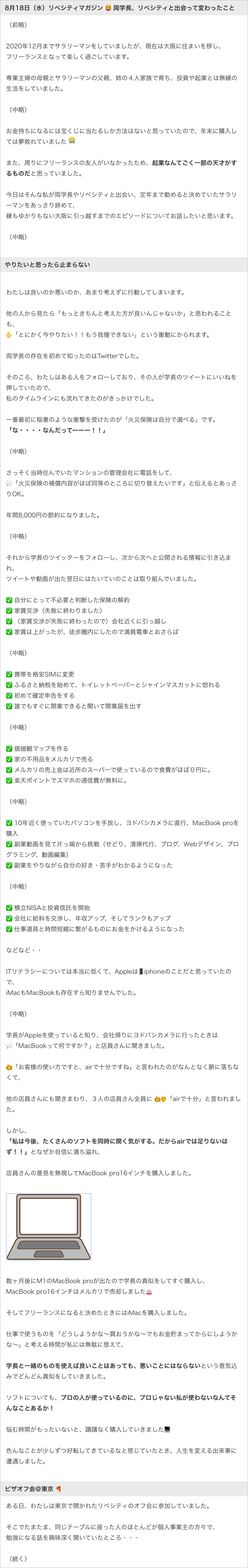 - リベシティ会員から募集したショートエピソードで、新たな気づきを得た