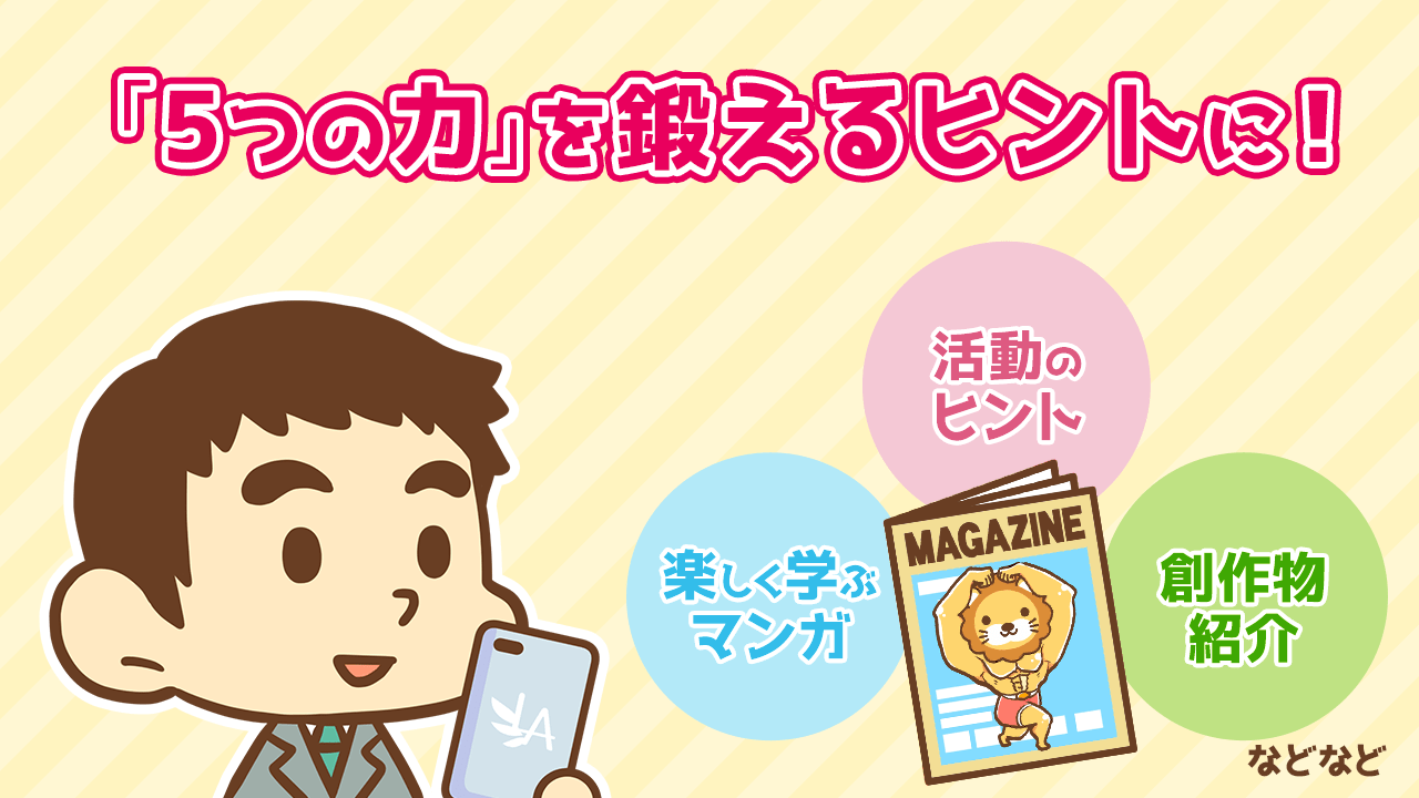 マンガコンテンツや会員へのインタビューマガジンでは、5つの力を鍛えるヒントが得られるかも!