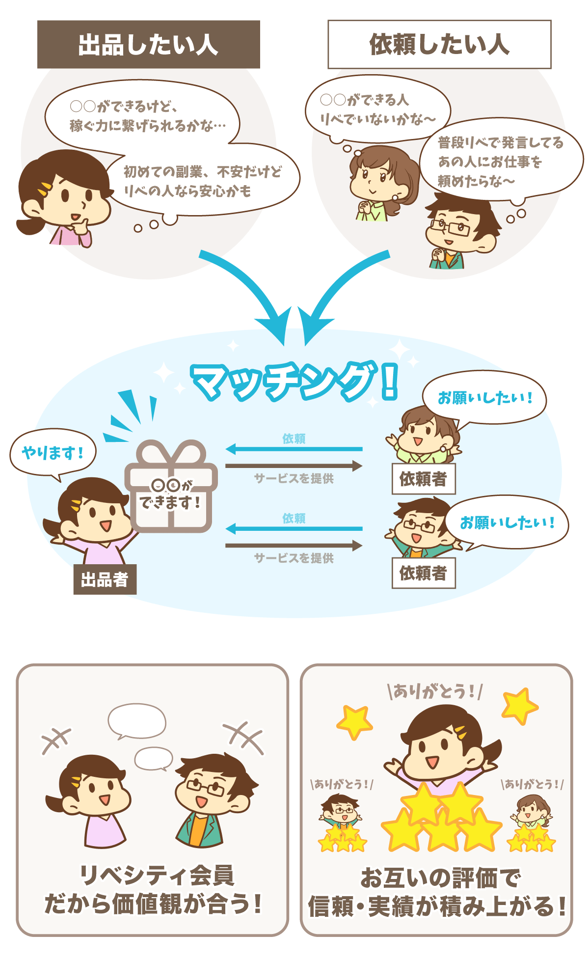*リベシティスキルマーケットMeetsは、オンラインコミュニティ「リベシティ」の関連サービスです。