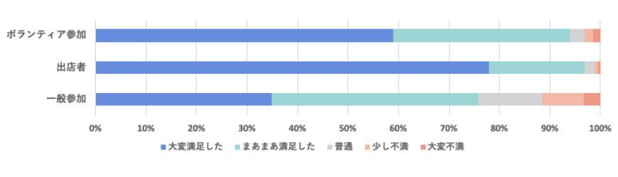 となっており、一般参加者の満足度が出店者・ボランティアよりも低い結果になりました。