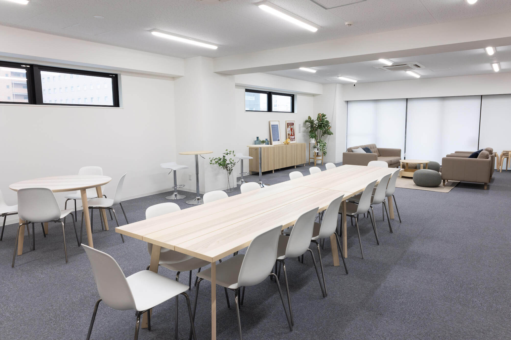 イベントや作業に適したテーブル席、個人作業用のスペース、くつろぎながら交流できるソファ席を設置しています。