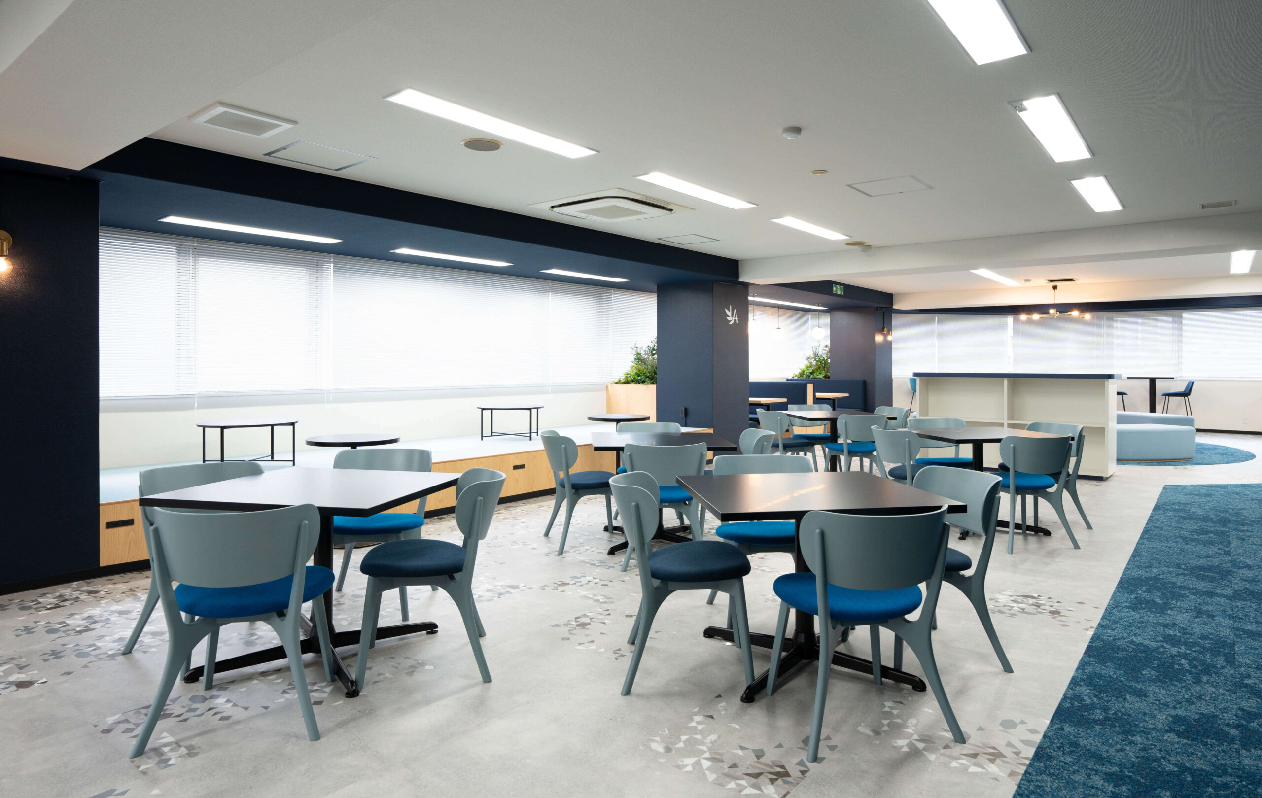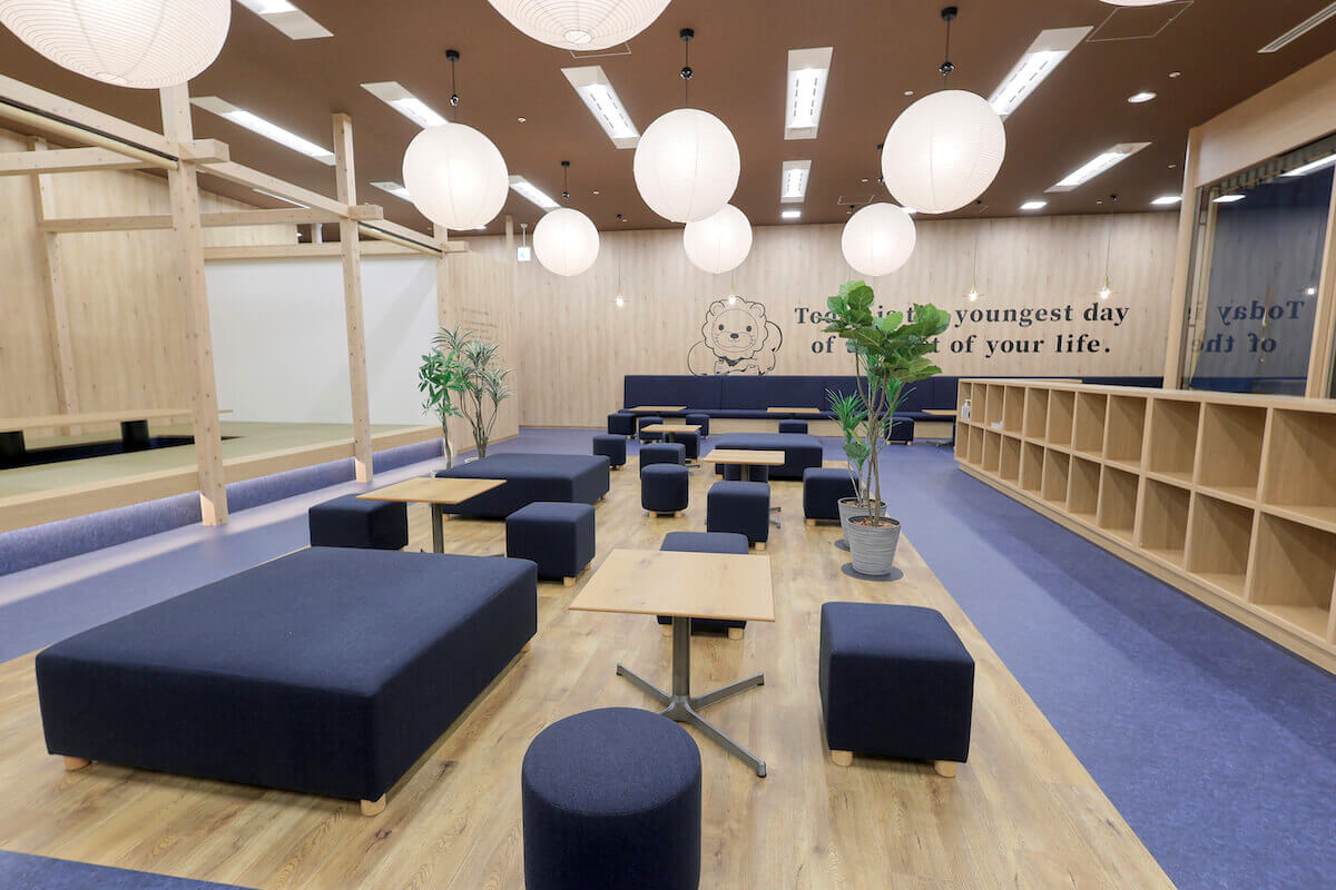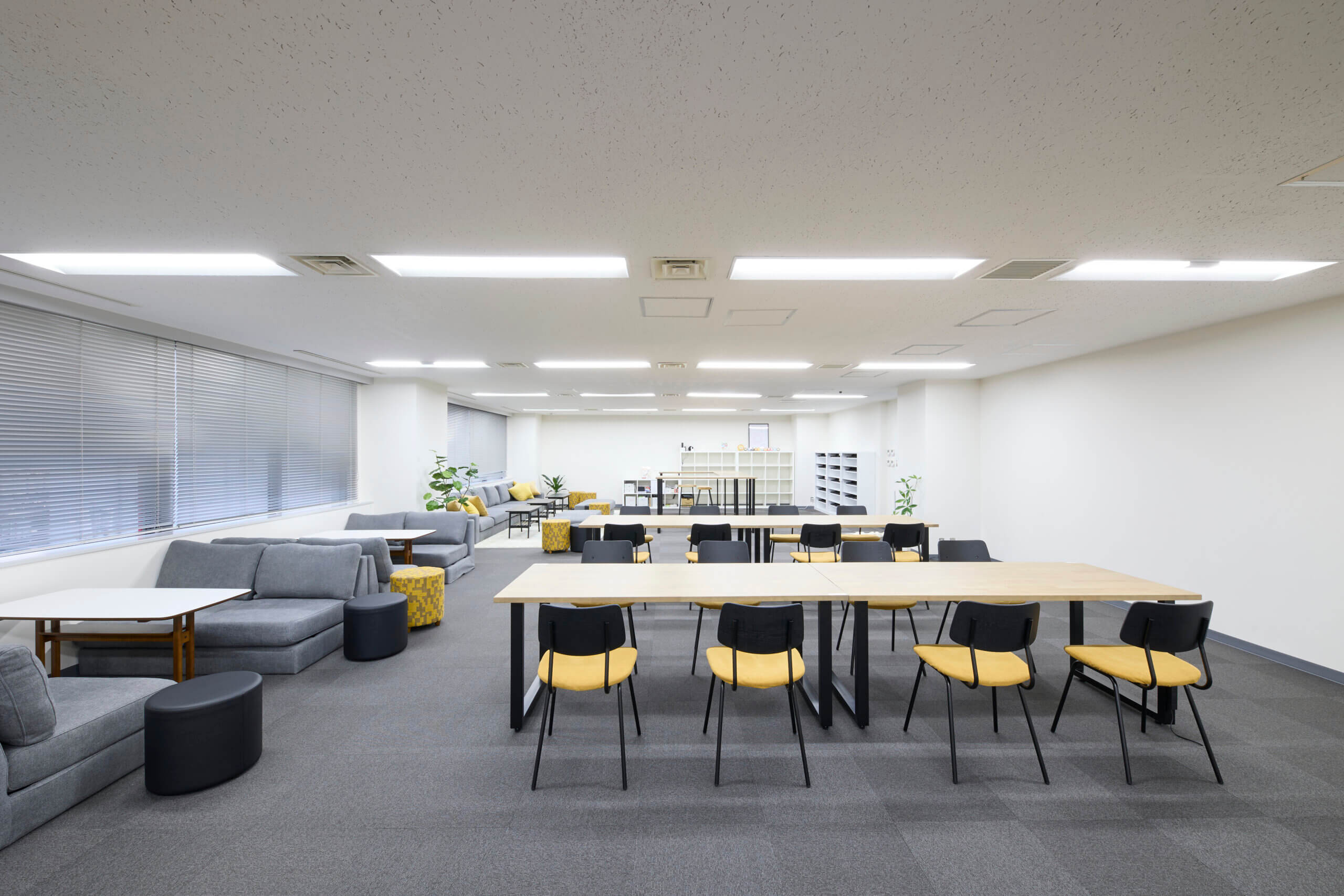 120名が利用できる広大なスペースと黄色を基調とした明るい空間で、交流やイベントを楽しめます。