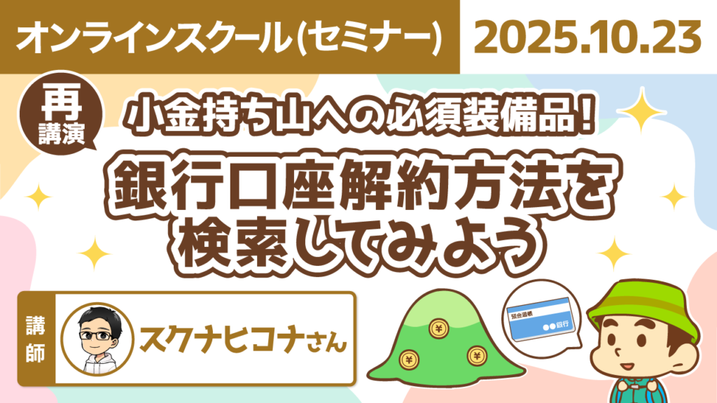 【再講演】小金持ち山への必須装備品!銀行口座解約方法を検索してみよう